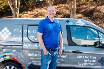 man in font of floor coverings international van
